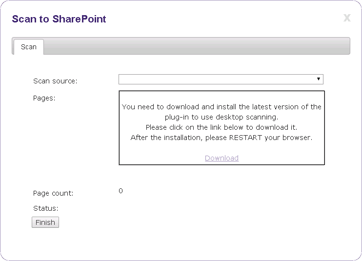 In addition to MFP devices, Udocx provides an interface for TWAIN capable desktop scanners via https://my.udocx.com and any modern, standards-compliant browser. Once the TWAIN plug-in is installed and the browser restarted, users will be able to initiate scans and control scanning options within the Udocx apps.